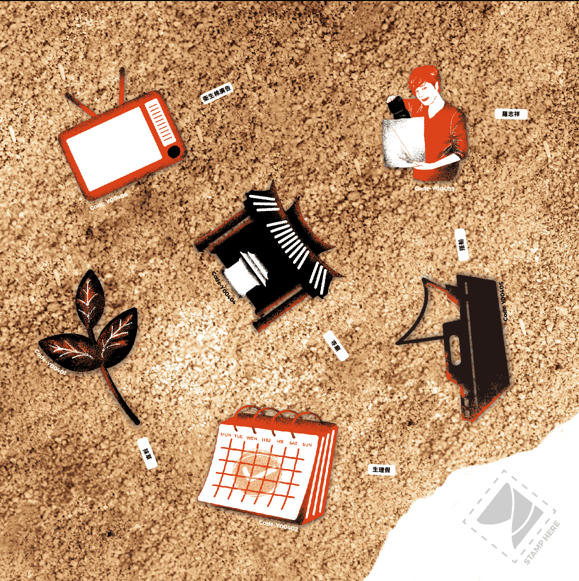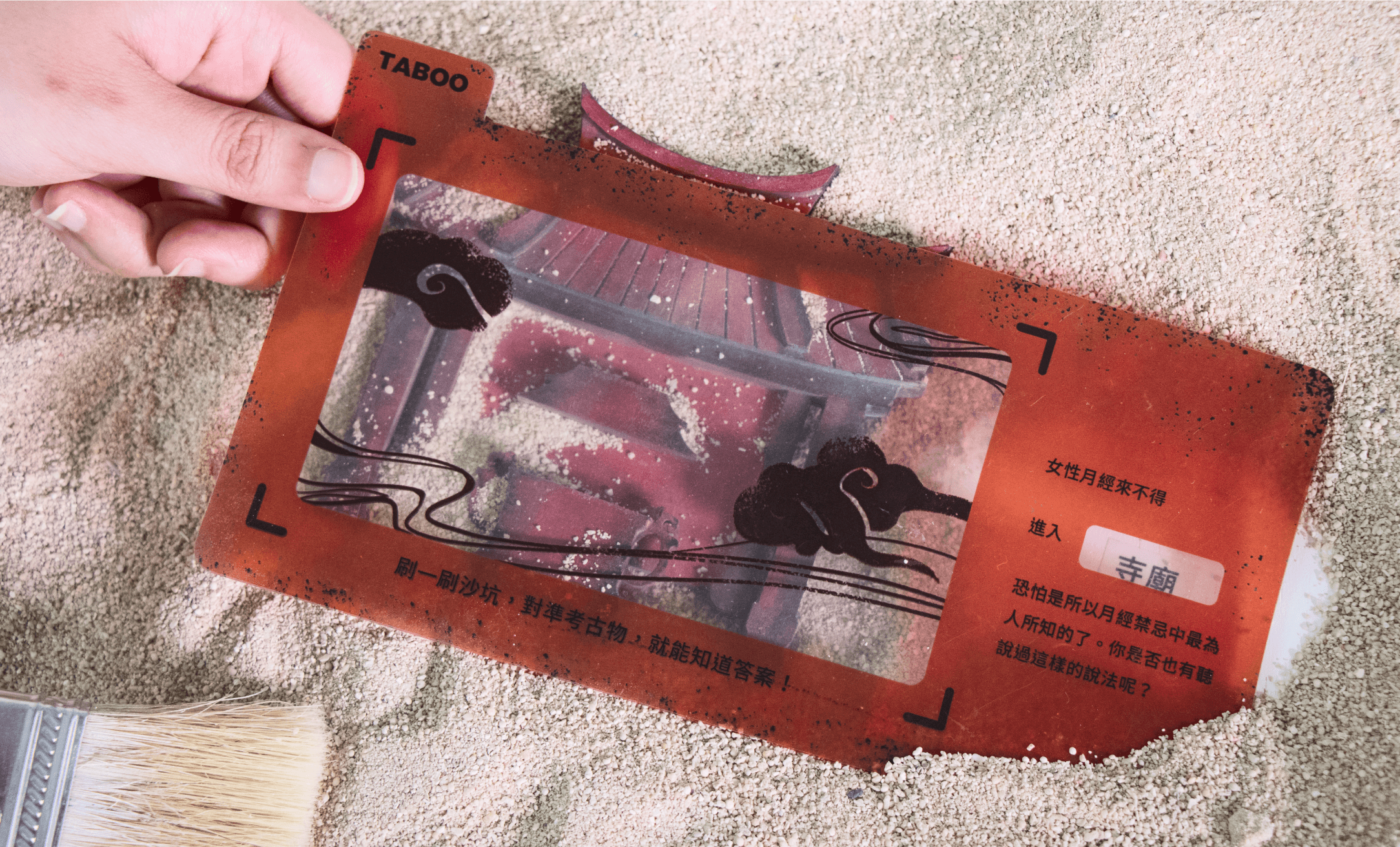 Visitors dig through the archaeology simulation to unveil past period taboos in Taiwan and the history of sanitary products.