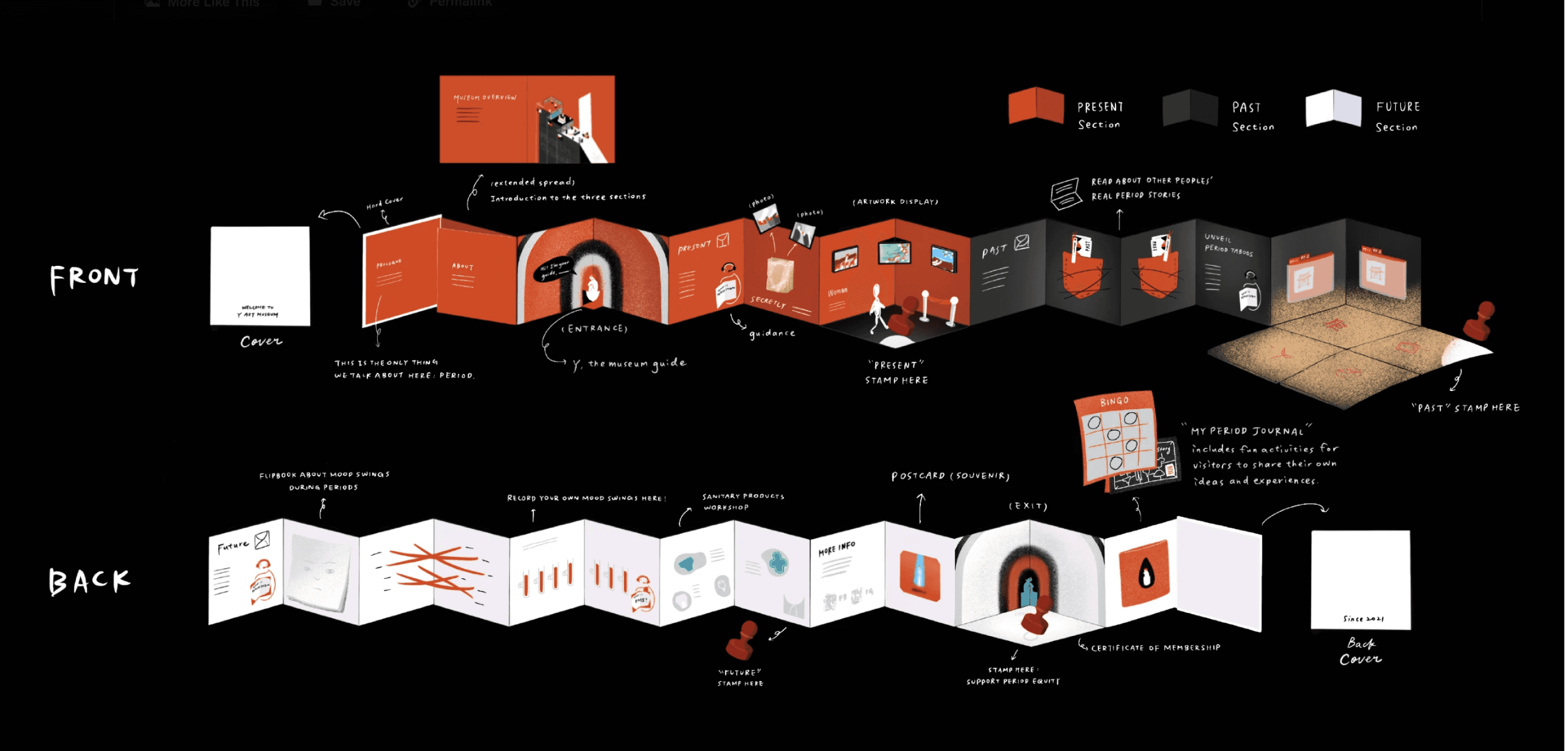 Period shaming is an underlying issue in Taiwan. 33% of our survey recipients thought it was awkward to buy sanitary pads in public, even if they were buying them from a vending machine outside the toilet. In fact, Taiwanese people call a period by its nickname—“auntie”—showing that period stigma still prevails in modern society. To address the issue of period shaming, we created a virtual museum, “Y Art Museum,” where artworks and related interactive installations are welcome to be submitted by everyone who relates.